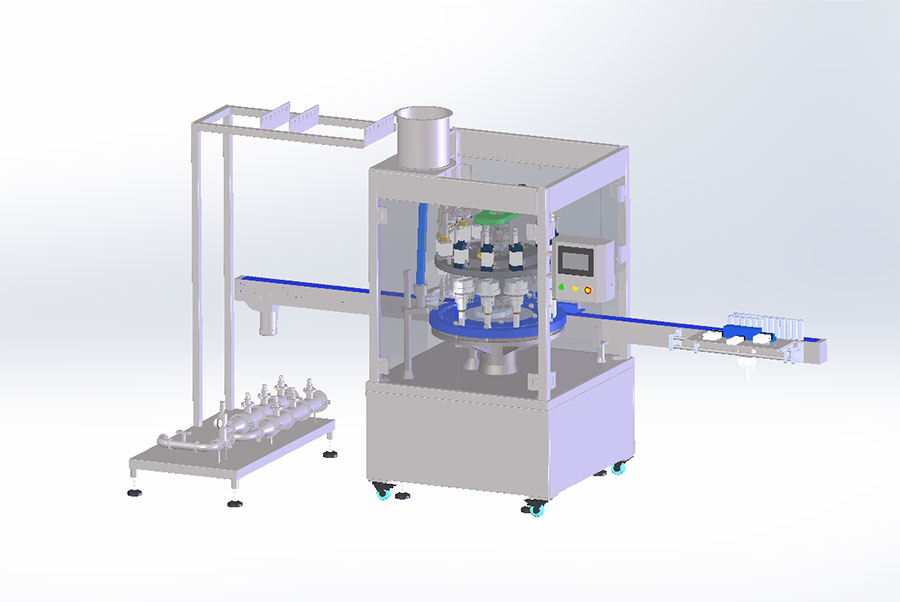 產(chǎn)品描述設(shè)備如下圖1: 此產(chǎn)線(xiàn)配置產(chǎn)品有(從前端到后端):回轉(zhuǎn)式高速上閥機(jī)組、離心式高速理閥機(jī)、供閥提升機(jī)、6工位高精度計(jì)量缸&單組增壓泵、6頭封口&6頭充氣一體機(jī)(正壓防爆電箱和防爆人機(jī)界面)。具有操作簡(jiǎn)單,人機(jī)交互友好,故障指示等優(yōu)點(diǎn)。便于排查和排除故障。2.各機(jī)組完成的生產(chǎn)工藝和性能參數(shù):A.回轉(zhuǎn)式高速上閥機(jī)組如圖2所示 圖2 型號(hào):SG-QGQW25-150HSF回轉(zhuǎn)式高速上閥機(jī),16工位回轉(zhuǎn)式高速上閥機(jī)汲取國(guó)外先進(jìn)設(shè)備技術(shù)研發(fā)而成,機(jī)組由閥門(mén)提升機(jī),轉(zhuǎn)盤(pán)式離心理閥機(jī)(此設(shè)備根據(jù)閥門(mén)形式非標(biāo)定制)和高速回轉(zhuǎn)上閥機(jī)構(gòu)成。工作原理為一個(gè)送閥軌道...